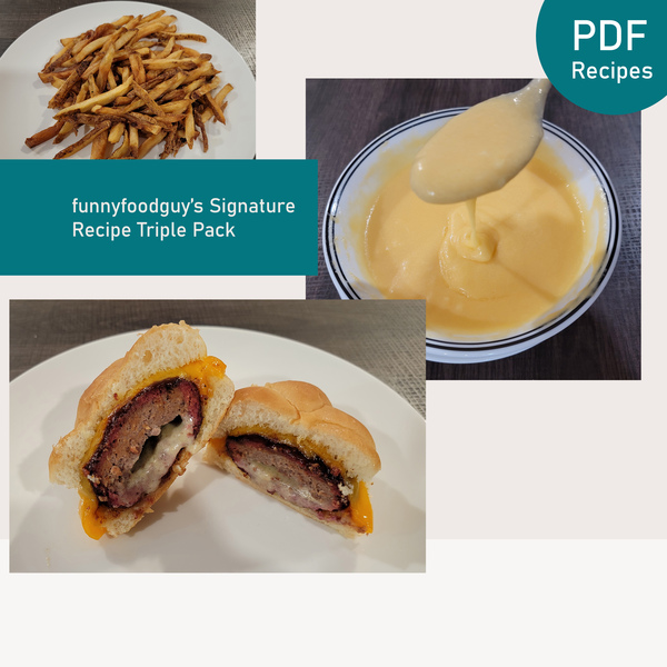 funnyfoodguy's Signature Recipe Triple Pack PDF (Smoked Cheeseburgers, French Fries, and Cheese Sauce Recipes)